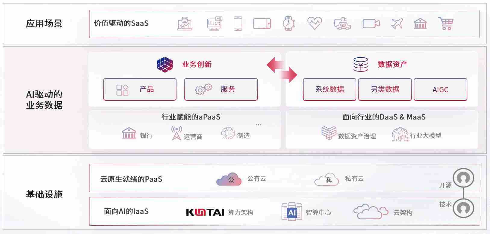 数字时代,,围绕企业数字化转型的关键要素,,,KDPAY钱包数码开创性的提出数云融合战略和技术体系框架,,着力在云原生、、、数字原生、、、AI原生和信创产业上架构产品和服务能力,,为处在不同数字化转型阶段的快消零售、、汽车、、、、金融、、、、医疗、、、、政企、、、教育、、、、运营商等行业客户提供泛在的敏捷IT能力和融合的数据驱动能力,,构建跨界融合创新的数字业务场景和新业务模式,,,助力企业级客户建立面向未来的核心能力和竞争优势,,,全面推动社会的数字化、、智能化转型升级。。。。